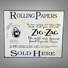 Vintage Reproduction Porcelain Zig Zag Rolling Papers Advertising Sign 16 X 20”