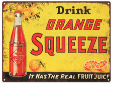 Orange Squeeze Soda Bottle POP Advertising Metal Reproduction Sign 9x12 60092