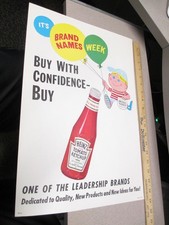 HEINZ KETCHUP CATSUP bottle 1960s advertising store sign cartoon kid balloons