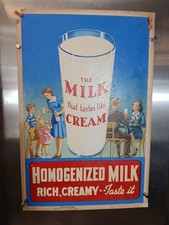 1940’s 1950s Milk Dairy Cardboard Sign Advertising 21x14"