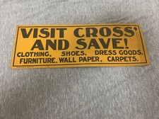 Antique Cardboard General Store Advertising Sign Visit Cross And Save 14”