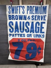 Swifts Premium Brown Serve Sausage Sign VTG Poster General Store Advertising