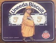 Vintage Uneeda Biscuit Metal w/ Cardboard Backing Advertising Sign 8.5x6.5 Blue