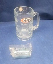 Vintage A&W Restaurant Set/2 Handled Clear Glass Mugs With Promotional Toy Mug