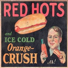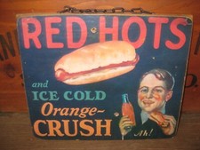 ORANGE CRUSH SODA POP RED HOTS WIENER HEAVY DUTY USA MADE METAL ADVERTISING SIGN