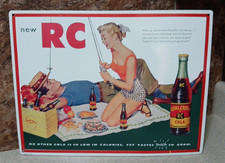 Vtg RC Cola Tin Sign Advertising Metal Royal Crown Cola Picnic Fishing Scene