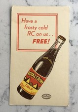 VINTAGE ROYAL CROWN COLA SODA ADVERTISING PREMIUM CARD FREE BOTTLE
