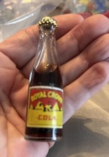 Vtg Original RC Royal Crown Cola 3" Miniature Glass Bottle full Soda Advertising