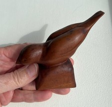 Vtg Antique Hand Carved Wood Folk Art Bird on Base Primitive One Piece Sparrow