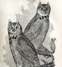 Large Horn Owl Victorian 1856 Bird Wood Engraving Antique Nature Ephemera DWT15