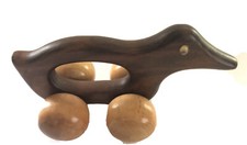 Vtg Wooden Hand Held Massager Googly Eyed Duck Dark Wood Rolling Wood Bird Decor