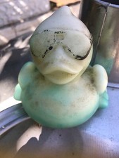 Vintage 1970's Comical Hand Painted Green 3-1/4" Tall Hollow Plastic Duck Toy