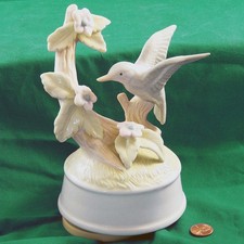 Vintage Hummingbird Bird On Branch Floral Music Box Porcelain Figurine Taiwan 7"