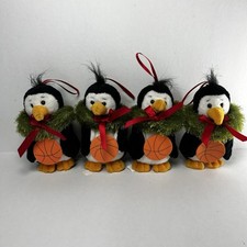 Lot Of 4 Vtg Ganz Plush Penguin Holiday Ornament Xmas w/Wreath & Basketball