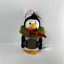 Vintage Ganz Plush Penguin Holiday Ornament Xmas w/Wreath & Football