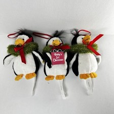 4 Vintage Ganz Plush Penguin Holiday Ornament Xmas- 1 “Baby’s 1st Christmas”