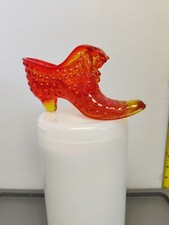 Fenton Art Glass Amberina Hobnail Cat Head Slipper Shoe