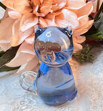 Vintage Blue Art Glass Cat 3"H Lovely Blue Cat