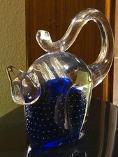 vintage altaglass blue cat figure mottled layered glass with internal bubbles