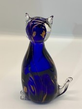 Cobalt Blue Art Glass Figural Cat Paperweight Vintage 4 1/2 In. Tall