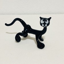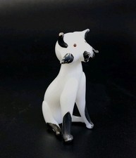 Vintage Mini Glass Cat Figurine Hand Painted Black White 2.75"
