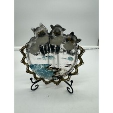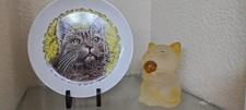 Vintage Glass Kitten Holding Glass Ball And Hanging Plate 7"x7"