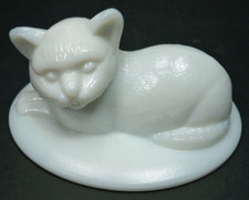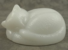 VINTAGE WHITE GLASS SLEEPING CAT FIGURINE