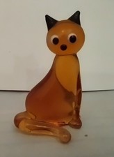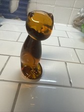 Vintage Pilgrim AMBER CAT KITTEN Glass Blown Figurine 4” Tall MCM