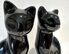 Vintage Black Glass Cat Figurines-Made in Taiwan-Mid Century Modern Style