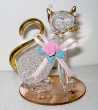 Cat Figurine Glass 4.5" Clear Murano Style Stunning Excellent Condition Vintage