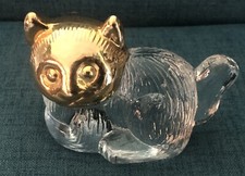 Vintage Glass Cat Figurine With Gold Colored Head 3.5”x3” Mother’s Day Gift EC