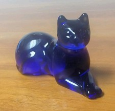 Vintage Art Glass Cobalt Blue Cat 2.5”