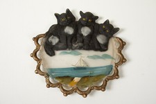 Three Black Cats (LC3/JSF6) Reticulated Glass Plate Hand Painted Antique Old