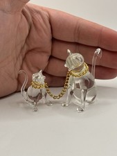 Vintage Handmade Glass Kitty Cat Pair Miniature Figurine Trinkets With Chain ***