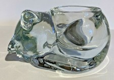 Indiana Glass Sleeping Cat Clear Votive Candle Holder Heavy Paperweight Vintage