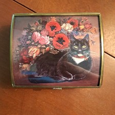 Vintage "Poppy Cat" Glass And Brass Trinket Box