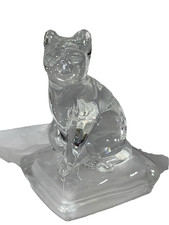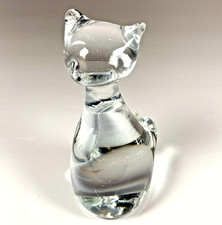 Vintage Clear Art Glass Cat Figurine Paperweight 4"