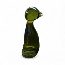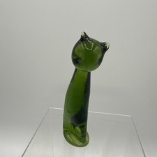 Vintage Hand-Blown Green Art Glass Cat Figurine 4.5” Studio Glass Mid-Century