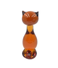 Viking / Rainbow Glass Amber Cat Figurine Vintage Mid-Century Modern 5.2"