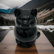 New Vintage Black Glass Cat Paperweight black cat figurine solid heavy
