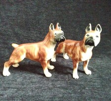 Two Antique Kitch Ceramic Boxer Dog Figurines Made in Brazil 7”