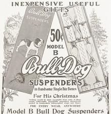 1907 BULL DOG SUSPENDERS Antique Print Ad Victorian Santa Xmas Tree Vtg Gift Box