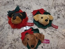 Vintage Doberman, Dachshund, Golden Dog Ornament Magnet Ho Ho Hounds Plush 4.5"