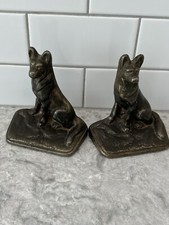 VTG Antique 1920s 1930s German Shepard Bronze Cast Iron Bookends