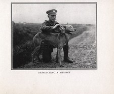 DOG Greyhound Messenger War Dog & British Soldier Handler, Rare Antique Print