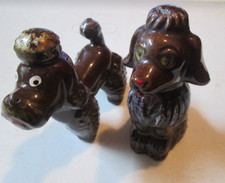 2 VINTAGE RED WARE POTTERY DARK BROWN POODLE DOGs FIGURINE 3 INCHE JAPAN OLD TOY