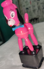 Vintage Plastic Collapsing Pink Poodle Toy On Black Stand