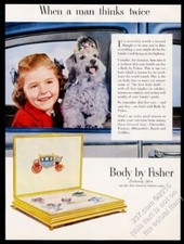 1952 toy poodle and girl photo GM Fisher car bodies vintage print ad