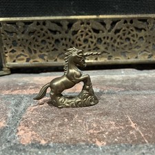 Vintage Miniature Gold Tone Solid Brass Unicorn Figurine Mid century