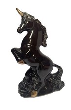 Mid Century Ceramic Unicorn Black Hand Painted Gold Trim - 1960’s